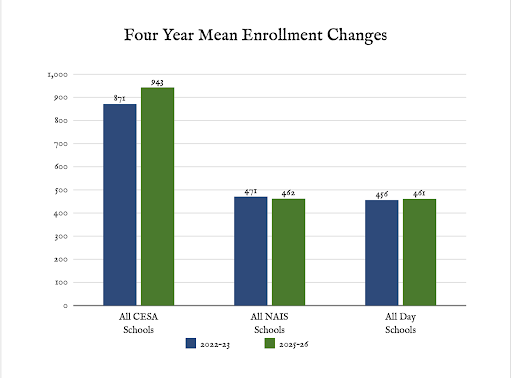 The last several years have brought both remarkable growth and new questions. While many independent schools nationwide have struggled to maintain enrollment, CESA schools as a group have experienced steady enrollment growth and strong student retention. At the same time, early signs of softening demand in some parts of the admissions funnel suggest that the post‑pandemic “boom” is giving way to a more complex and competitive reality.